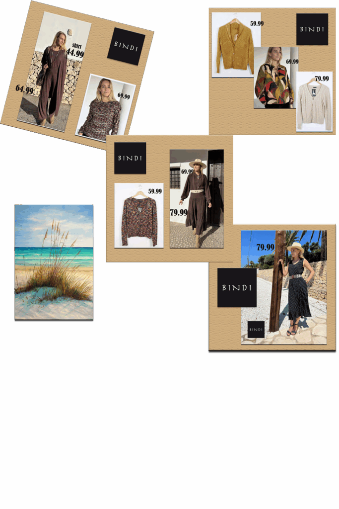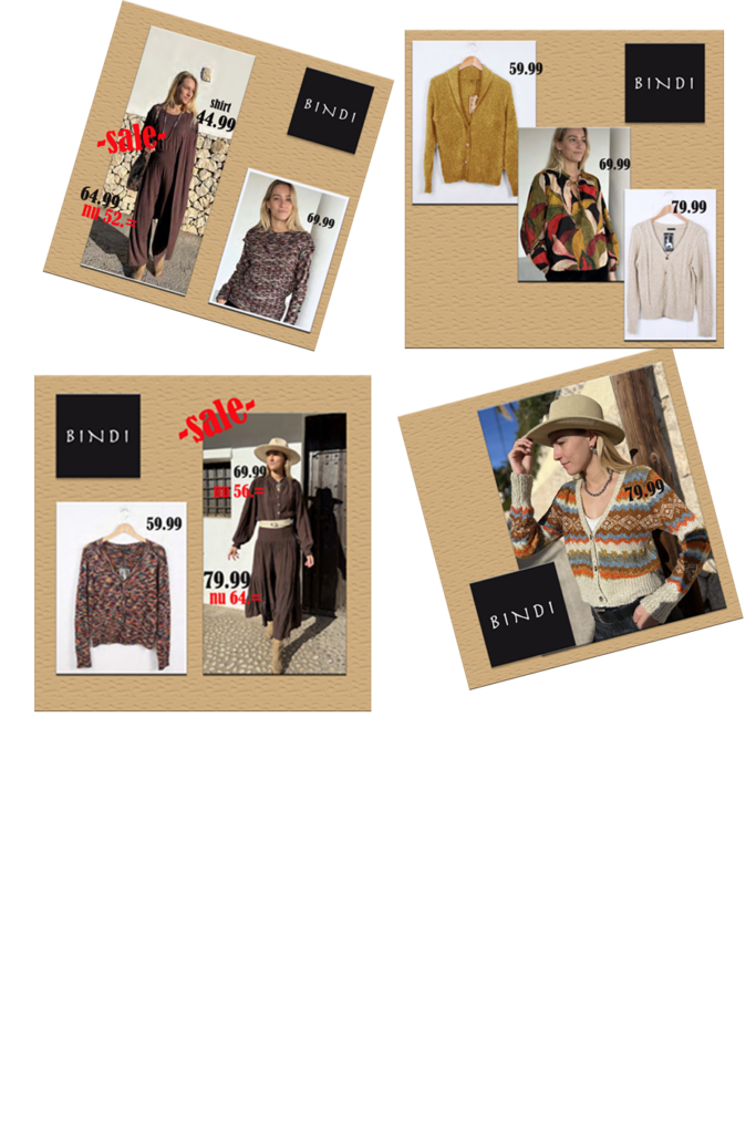 Bindi is een romantisch ibiza-stylish merk met vooral heerlijk zachte stoffen. De collectie bestaat uit fleurige lange en korte wikkeljurken, zwierende overslagrokken met stroken en bijpassende blouses, tops en knoopvestjes. Zeker een aanrader !!!